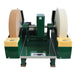 The 16" Cork and Felt Glass Polisher is designed for coldworking glass to a high polish. The cork wheel combined with mildly abrasive pumice will pre-polish the work piece. The felt wheel combined with cerium oxide will bring the piece up to a high polish. The arbor can be quickly disassembled (4 bolts) for pulley change or bearing inspection. Water valve and spray nozzle are built in for easy hookup. The water valve takes 1/4" OD plastic tubing for gravity water flow or for pressure systems. Unit comes with one (1) 16" x 3" cork wheel and one (1) 16" x 3" felt wheel installed, dressed and factory tested for balance. Wheels turn at 280rpm to minimize polish powder loss, while a rim speed of 1,173SFM creates the friction necessary for a brilliant finish. The wheels spin up and away from the user to for maximum access to the wheels. This model ships fully assembled with belt guard 1/2hp motor, instructions, and product guarantee.